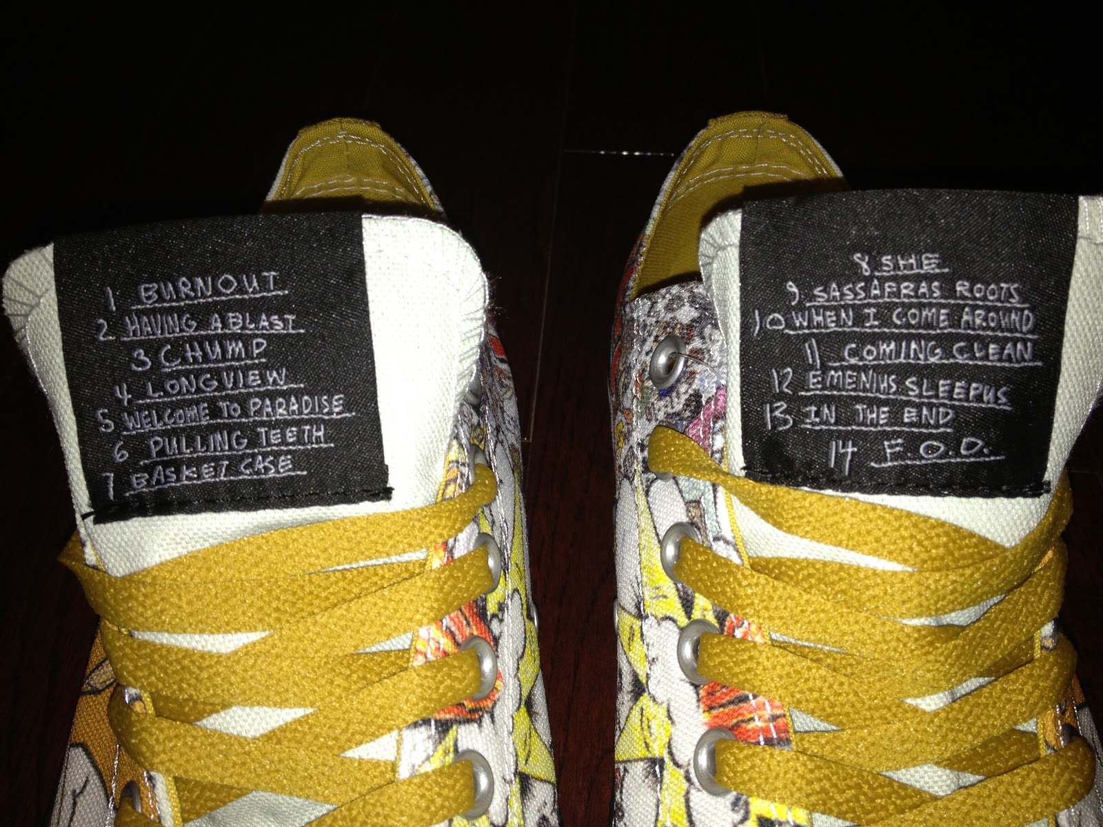 Gracing the side walls of the sneakers are images taken from the band's staple album Dookie realeased in 1994. Growing up in that whole grunge/alternative era, this was the album to listen to. Even to this day, I continue to listen to it. I was stoked to see it listed as one of the greatest albums of all time and I encourage you to hear it out some time soon. Furthermore, if Converse wasn't involved in this at all, I don't think any other brand would be a legitimate choice for this mash-up.